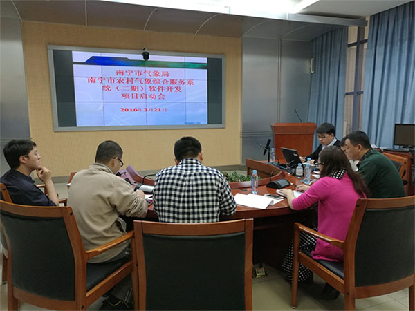 2016年3月21日,由我公司中标的南宁市农村气象综合服务系统(二期)软件开发项目在南宁市气象局召开项目启动会。南宁市气象局杨副局长、南宁市气象台王台长、黄台长、监理公司以及我公司相关项目负责人参加了此次会议。